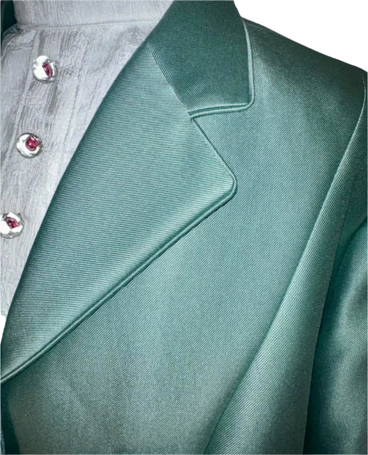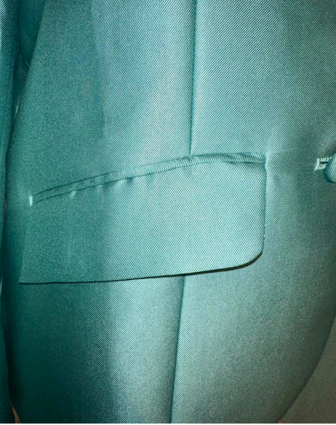 Consigned, excellent condition, sea foam fabric with a sheen, fits approximately a ladies 20