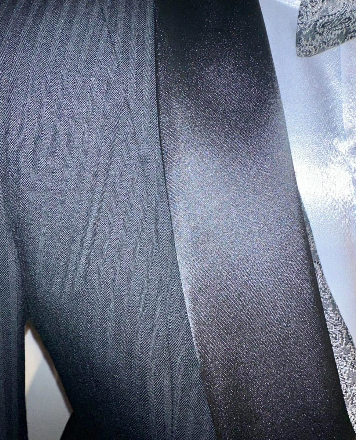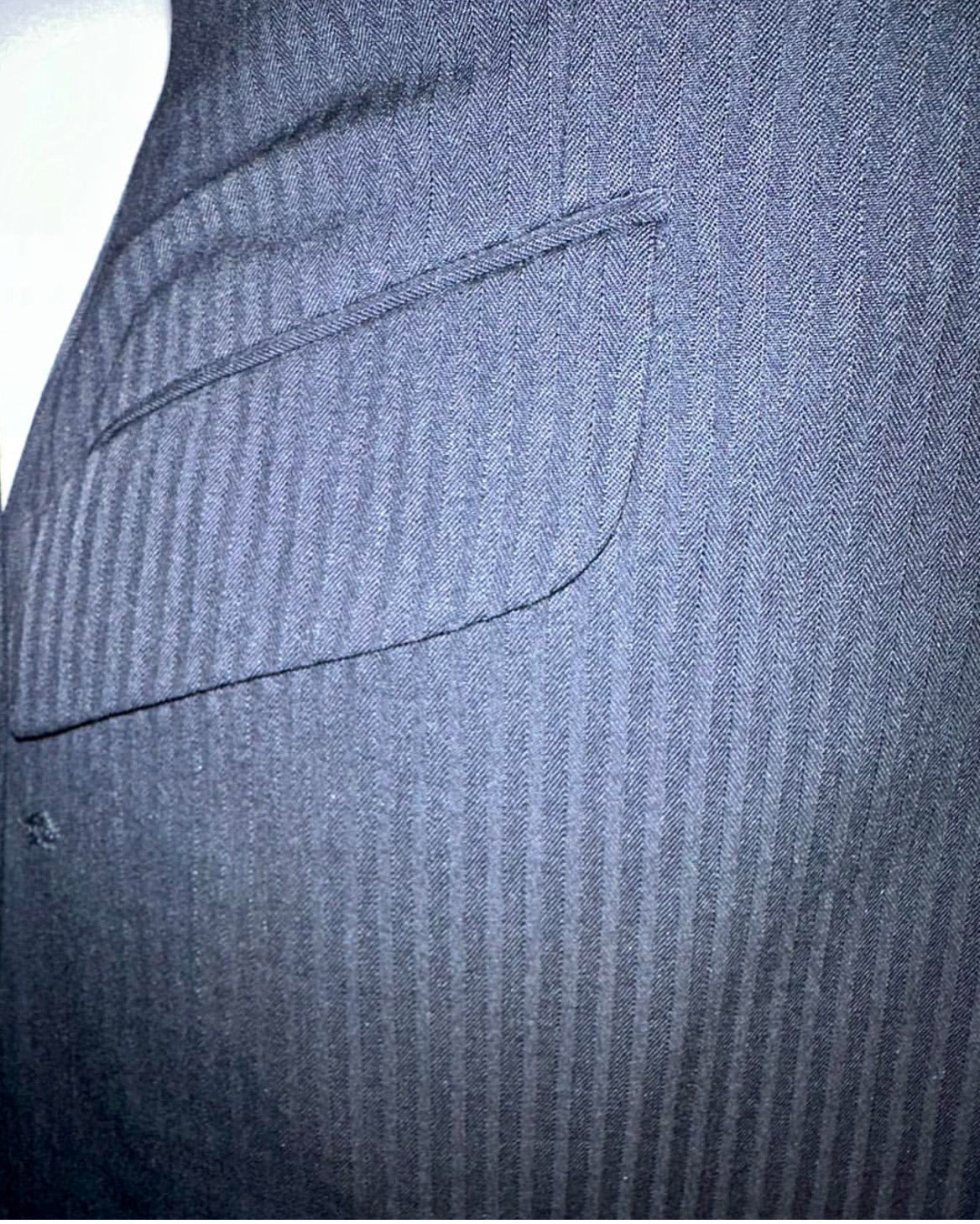 Consigned, excellent condition, black with a herringbone pattern. Approximately fits a ladies size 4/6 with additional let out.