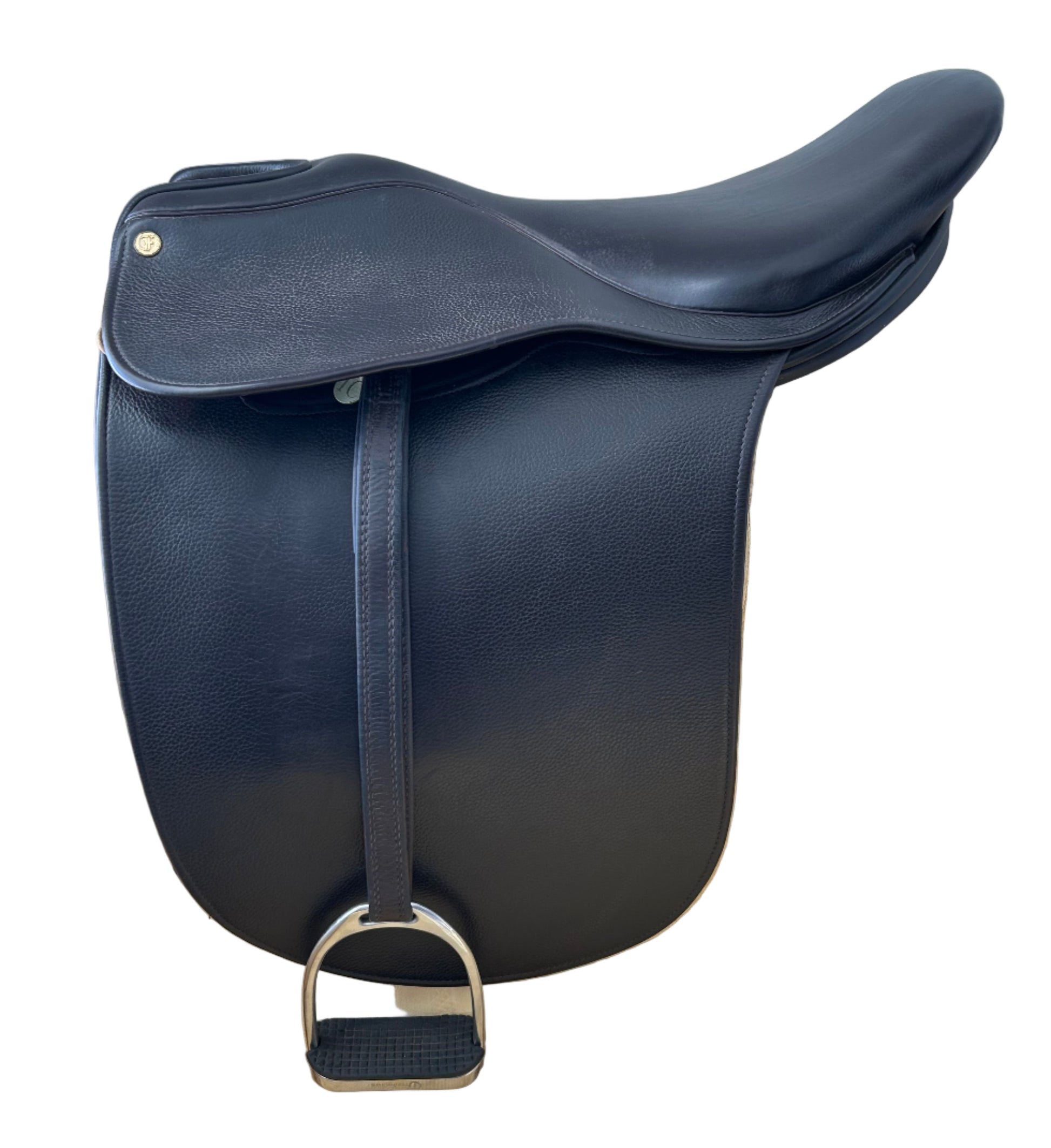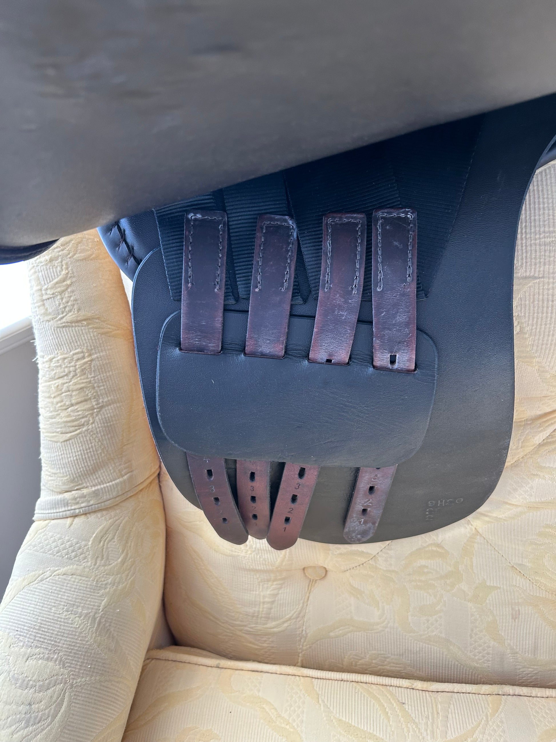 Consigned, dark brown, featuring the popular super grip leather, in excellent condition. Includes Freedman's: stirrup leathers, irons, and cover.