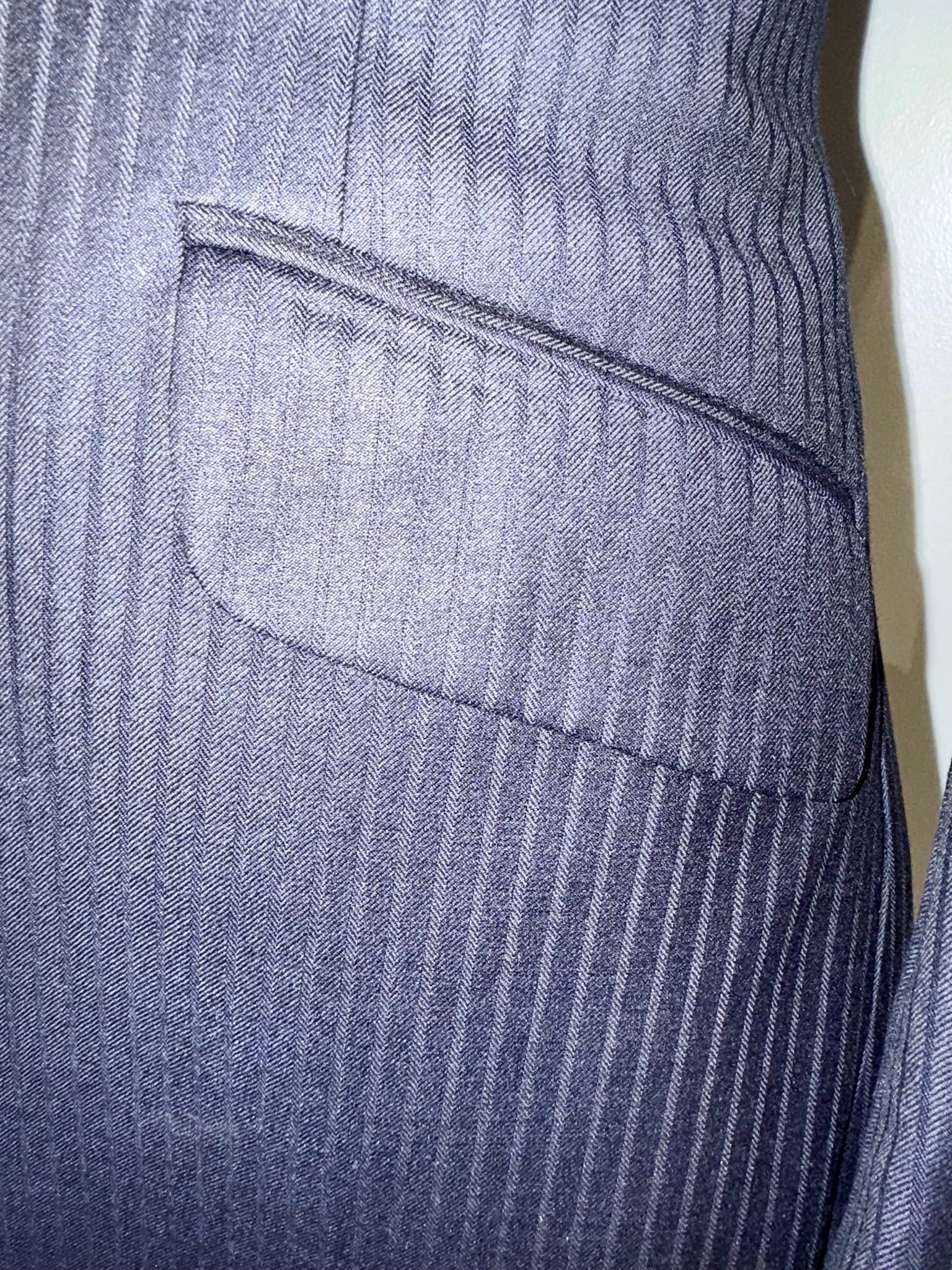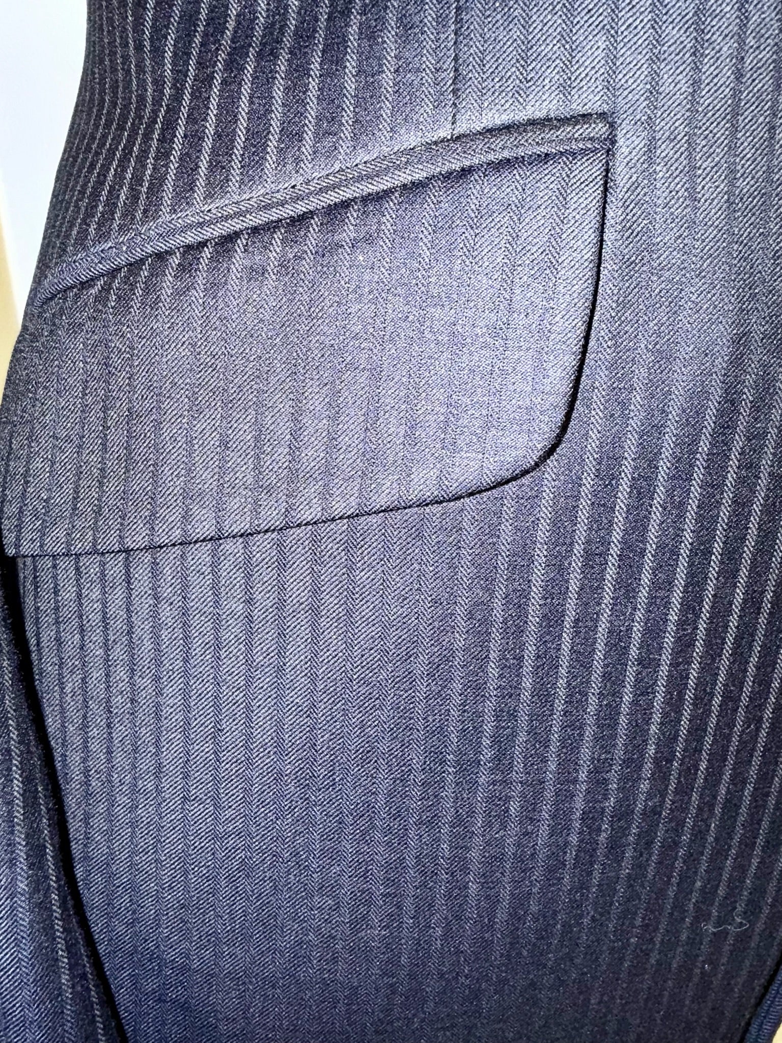 Consigned, excellent condition, dark navy with a small herringbone pattern, approximately fits a ladies size 2/girls 16.