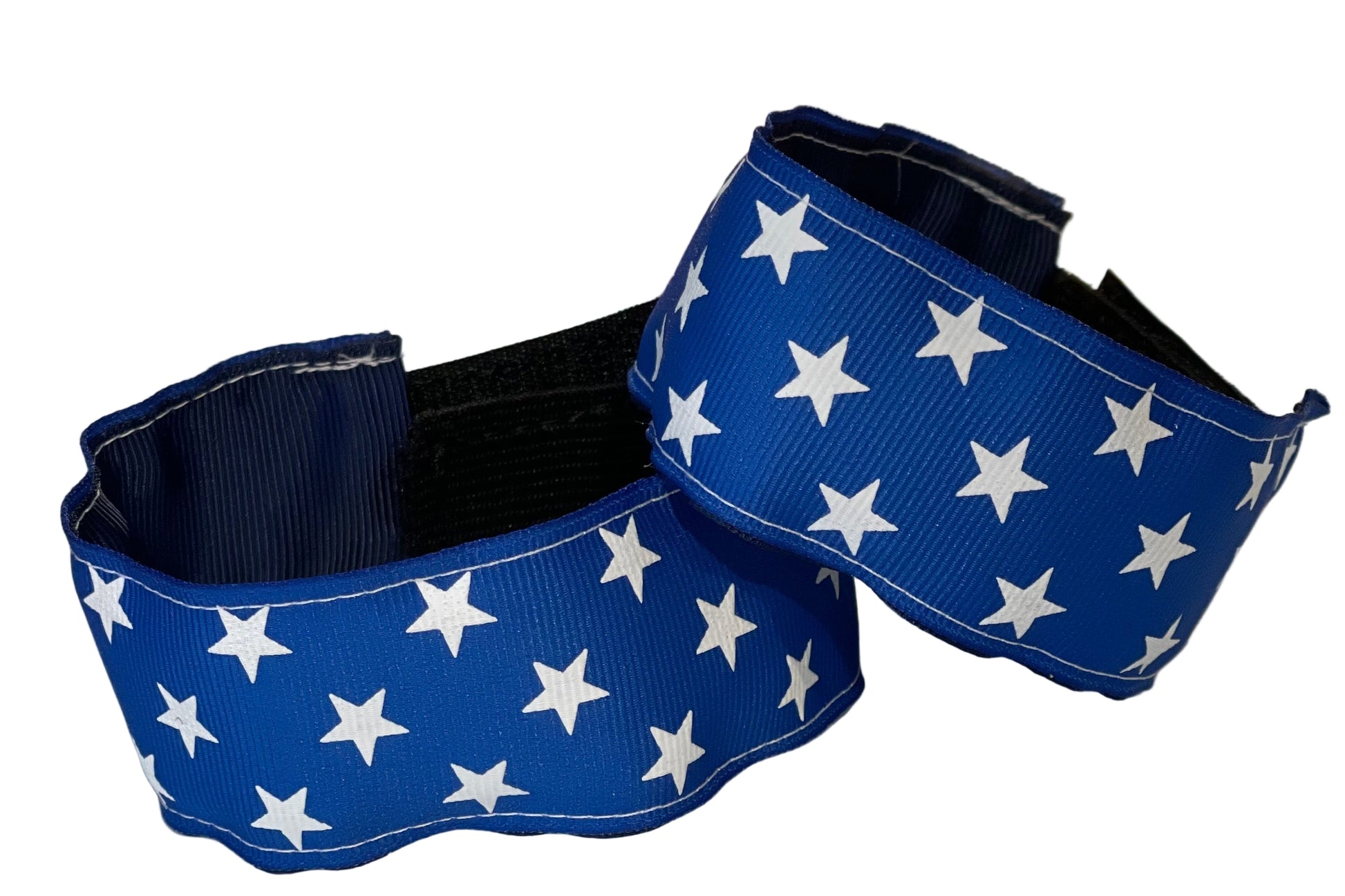 We offer a variety of jod savers, they are once size fits all with a Velcro strap. They are meant to hold the jod cuff up around the calf so the bottoms do not get damaged while we are waiting to show!