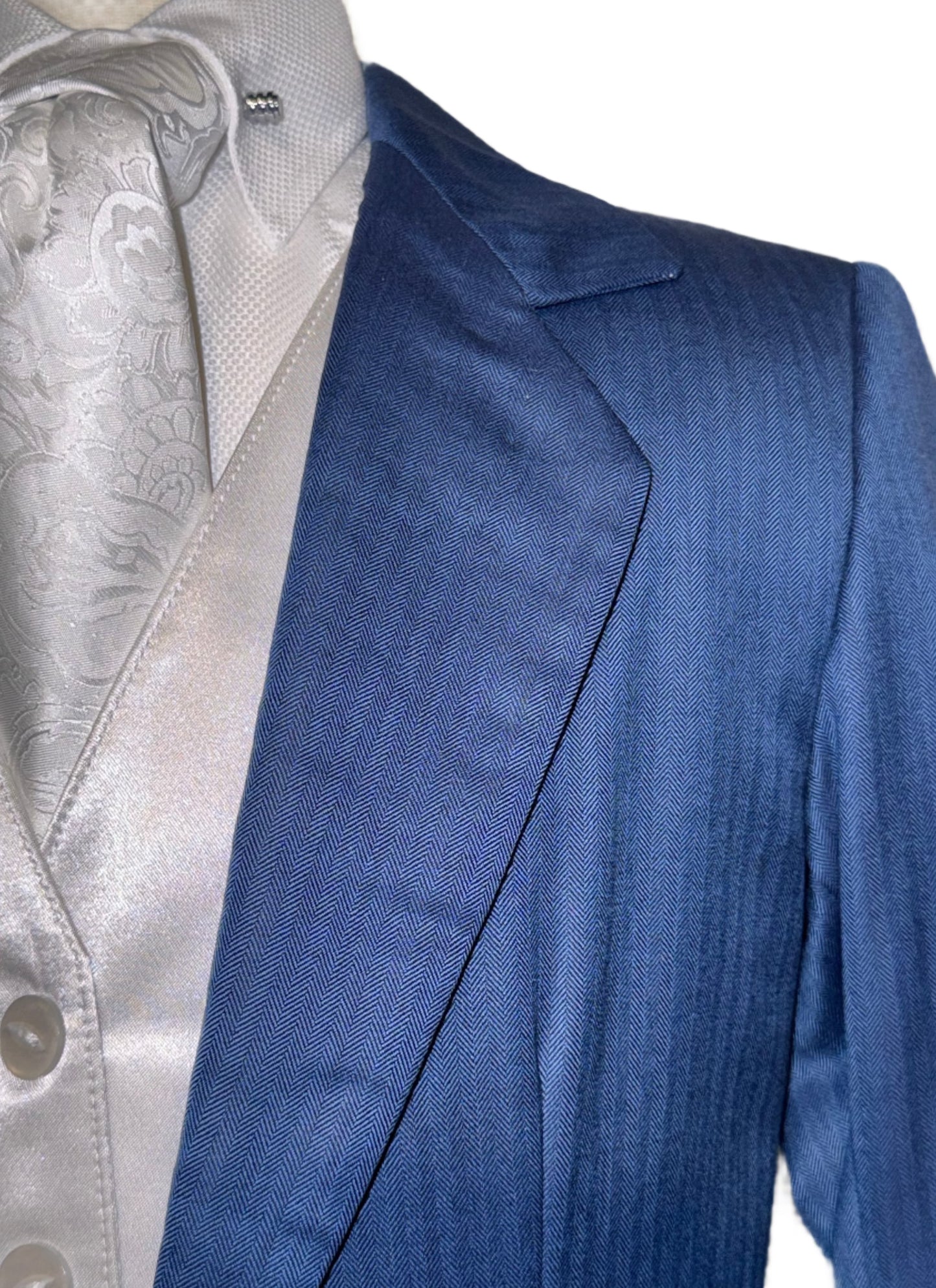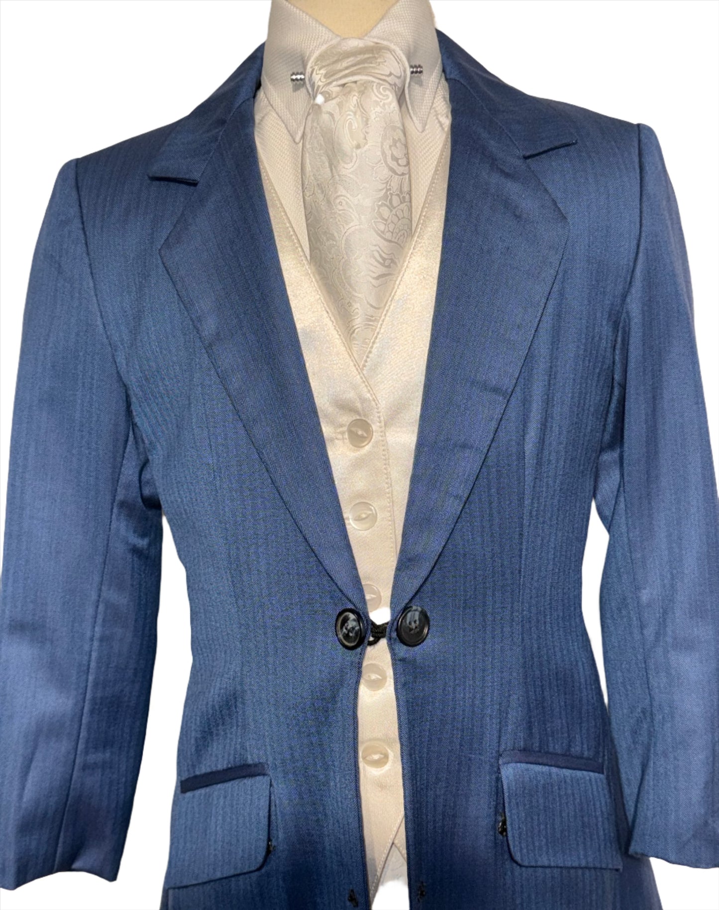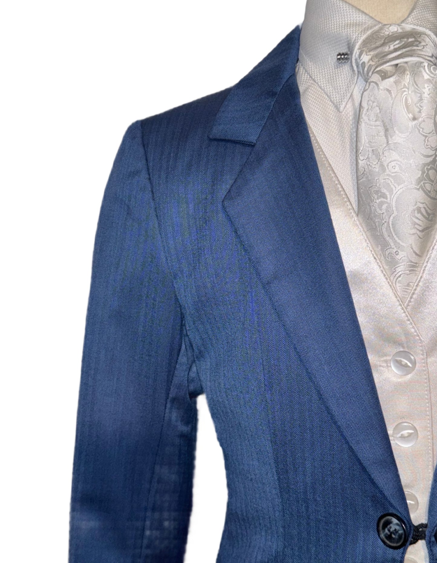 Marsha de Arriaga, children's day suit in a royal blue with a soft shadow strip pattern. Stock size 4, approximately fits a children's size 4/6.