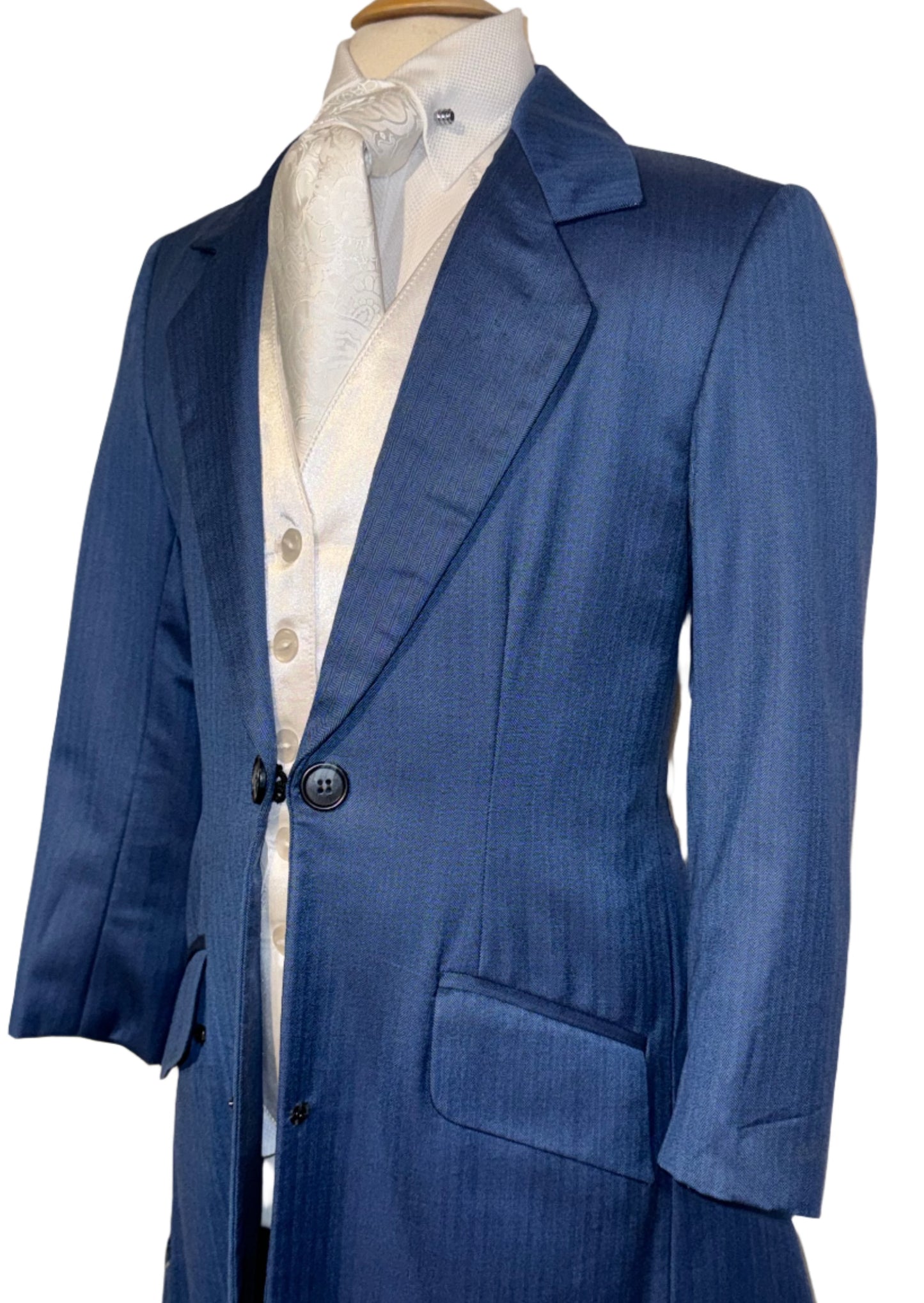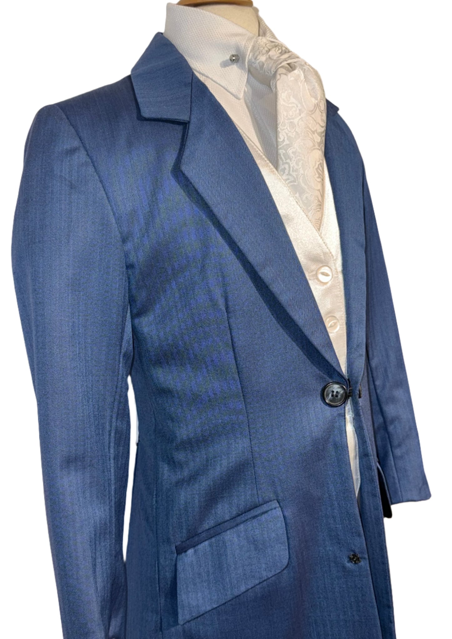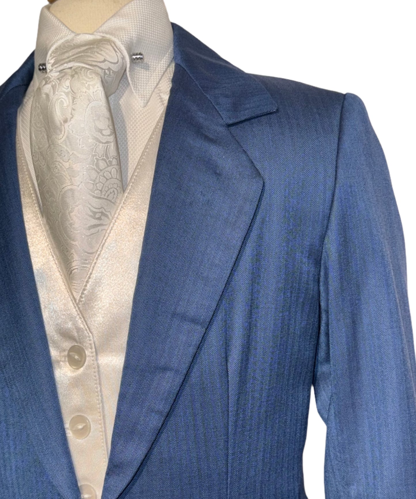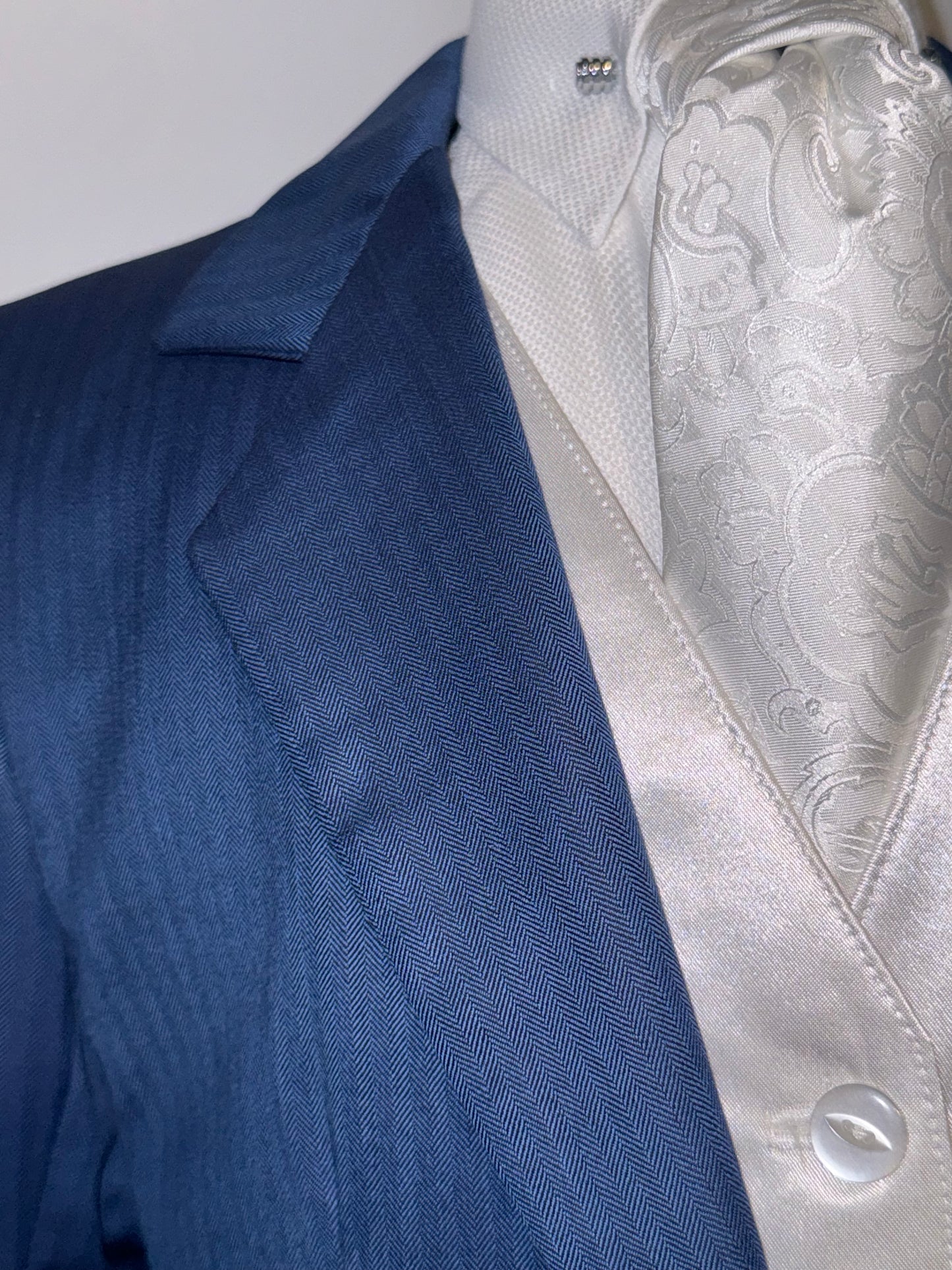 Marsha de Arriaga, children's day suit in a royal blue with a soft shadow strip pattern. Stock size 4, approximately fits a children's size 4/6.