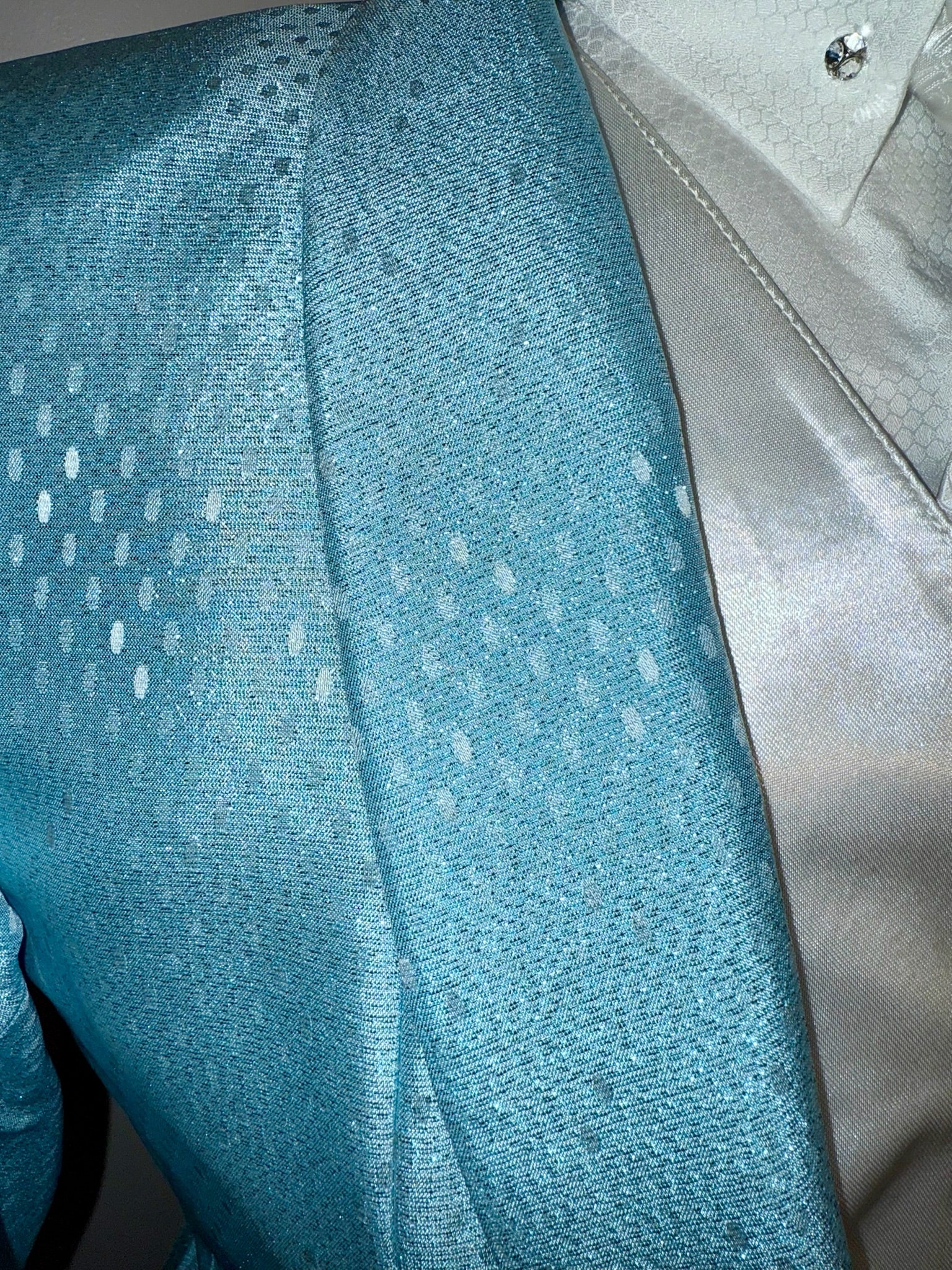 Consigned, excellent condition, sky blue with shimmer dash pattern. Approximately fits a ladies 6.