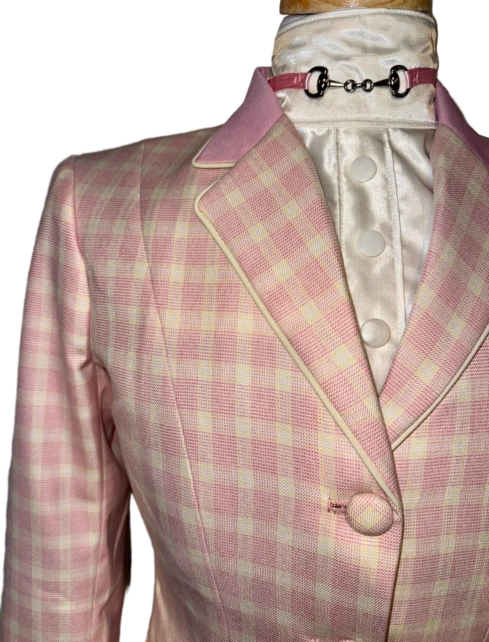 Cream and blush pink plaid, approximately fits a ladies size 0/2